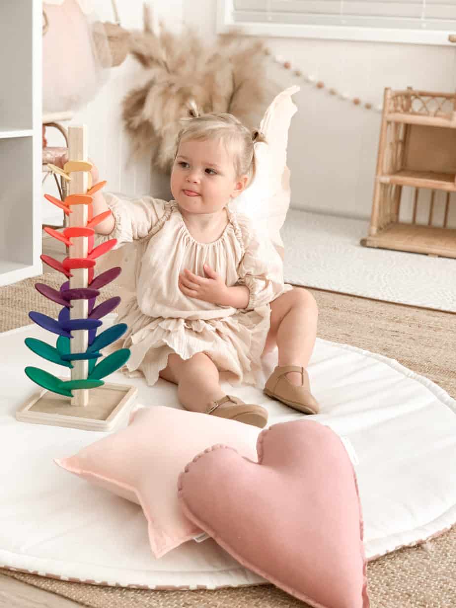 Designed with care in Poland, this toy is made from eco-friendly timbers, natural plant dyes, and finished with flax seed oil, ensuring a safe and sustainable play experience for your little one. The stained leaves expose the natural wood texture, offering both a visual and tactile delight.